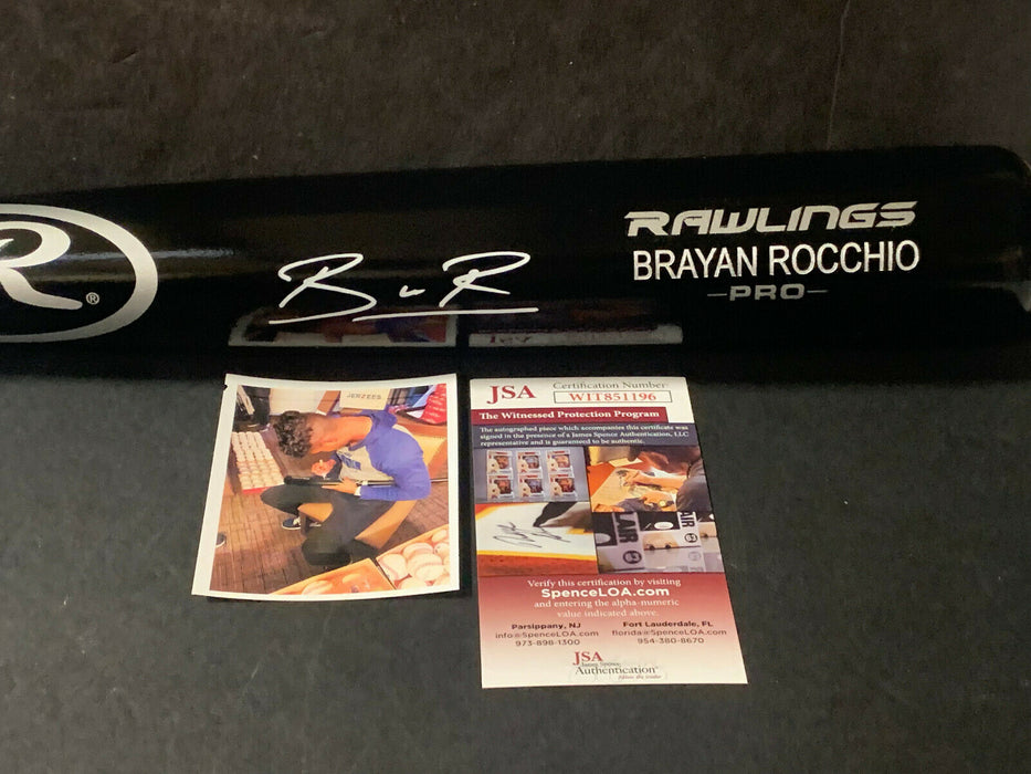 Brayan Rocchio Guardians Auto Signed Engraved Bat JSA WITNESS COA Black