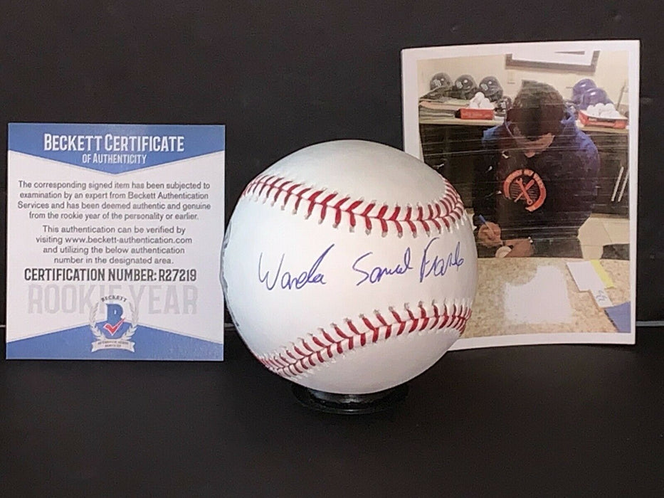 This is an Official Major League Baseball that Wander signed at our private signing. Wander signed his full name Wander Samuel Franco to the baseball! We show a picture of Wander from our signing, you will also receive a copy of this proof photo. This item will come with a Beckett Rookie COA & matching #d sticker. We use stock photos.