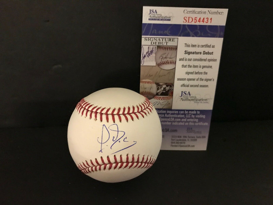 This is an Official Major League Baseball that Yusniel signed last year. This baseball comes with a JSA SIGNATURE DEBUT COA. SIGNATURE DEBUT COA'S are very unique, it guarantees that the signature was signed and authenticated prior to the players 1st game of his second MLB season. Having a Debut Signature of a player should make your collection very unique. JSA is the leading authenticator in our industry! We use stock photos.