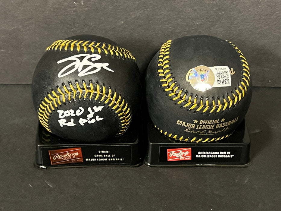 This is an Official Major League Black Baseball that Tyler signed at a private signing. Tyler added 2020 1st Rd Pick to the baseball. This item will come with a Beckett COA & matching #d sticker. We use stock photos.