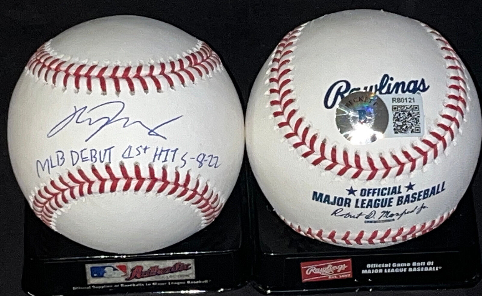 This is an Official Major League Baseball that Alek signed at a private signing. Alek added MLB Debut 1st Hit 5-8-22 to the baseball. This item will come with a Beckett Rookie Hologram. Beckett is a leading authenticator in our industry. We use stock photos.