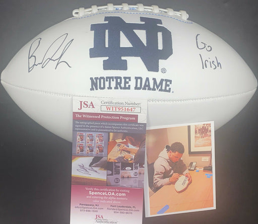 SidsGraphsThis football was signed by Brandon at a private signing. Brandon added Go Irish to the football. We show a picture of Brandon from the signing you...