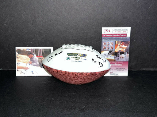 View full detailsChris Tyree Notre Dame Signed White Logo Football JSA Witness COA