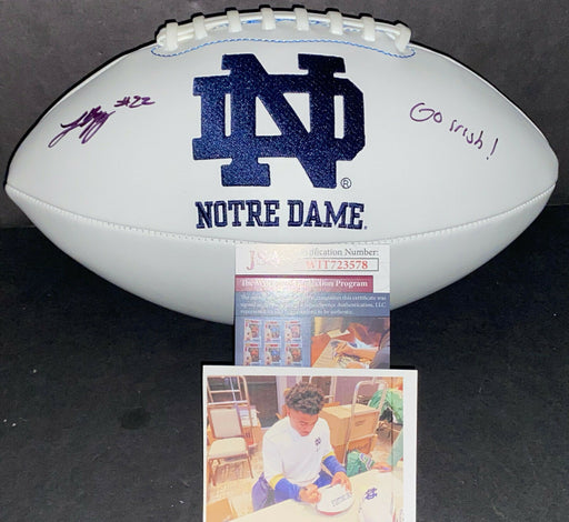 View full detailsChris Tyree Notre Dame Signed White Logo Football JSA Witness COA GO IRISH!