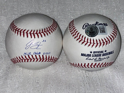 This is an Official Major League Baseball that Justin signed at a private signing. Justin added MLB Debut 4-12-21 to the baseball! This baseball co...