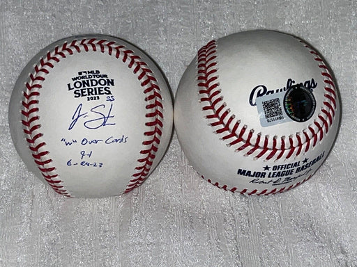 This is an Official Major League London Series Baseball that Justin signed at a private signing. Justin added W over Cards 9-1 6-24-23 to the baseb...