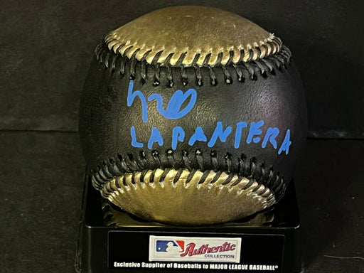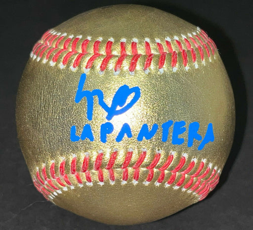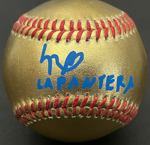 This is an Official Major League Black and Gold Baseball that Luis signed at a private signing. Luis added his nickname La Pantera to the baseball....