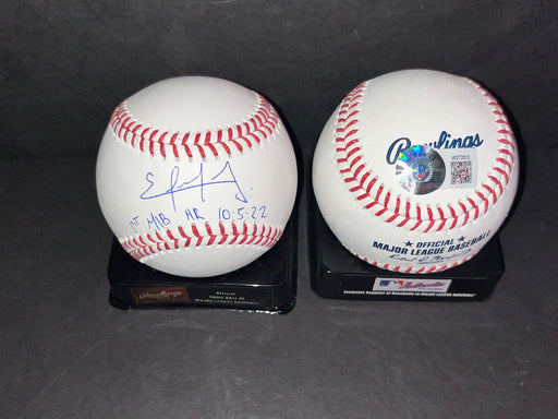 SidsGraphsThis is an Official Major League Baseball that Ezequiel signed at a private signing. Ezequiel added MLB Debut 1st Hit 9.23.22 to the baseball. Thi...
