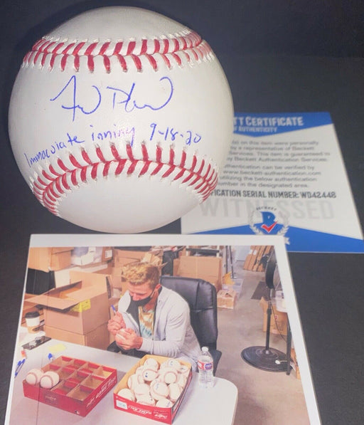 View full detailsZach Plesac Indians Signed MLB Baseball Beckett WITNESS COA Immaculate Inning