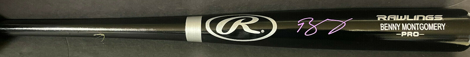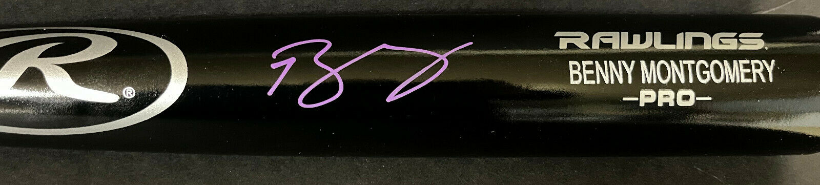 Benny Montgomery Colorado Rockies Signed Engraved Bat Beckett Witness COA Black