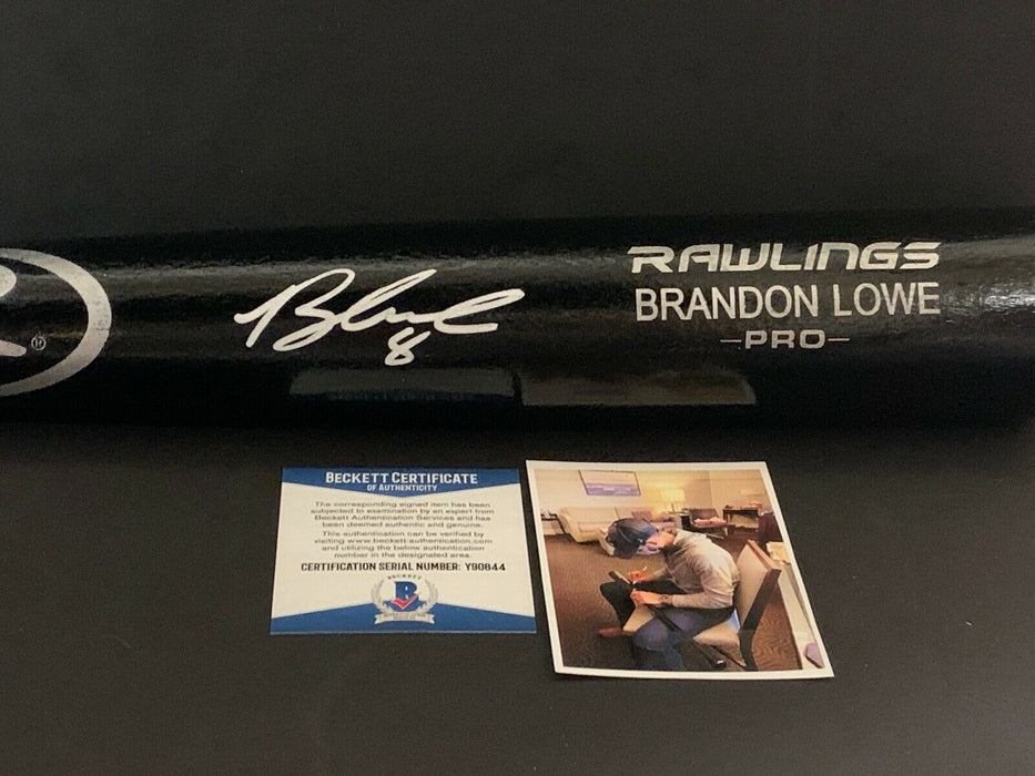 Brandon Lowe Tampa Bay Rays Autographed Signed Black Bat BECKETT Hologram