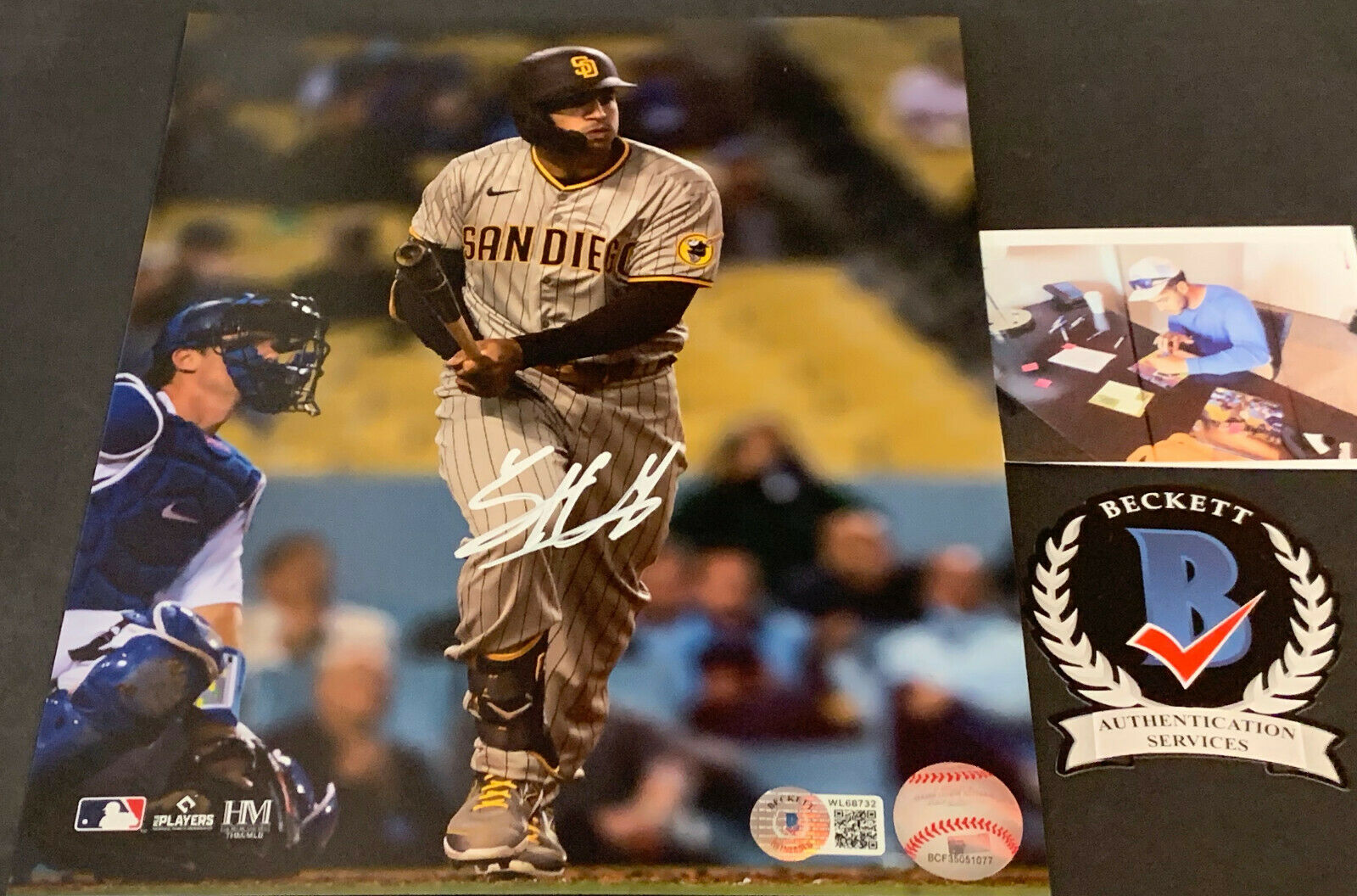This is a licensed 8x10 photo that Trent signed at a private signing. This is a great photo of Trent and Fernando Tatis Jr. We show a picture of Trent from our signing, you will also receive this proof photo. This item will come with a Beckett WITNESS Hologram. Beckett Witness Program guarantees the autograph is real as a Beckett employee was present when the item was signed. Beckett is a leading authenticator in our industry! We use stock photos.